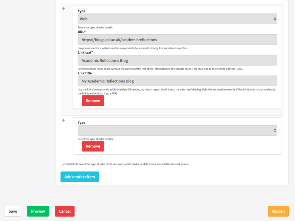 10. Once you are happy with the information you have entered, click Save, then click Publish.