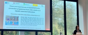 Scottish Physical Activity Research Connections (SPARC), established in 2016, is a network of physical activity researchers, policy-makers and practitioners in Scotland organised by the Physical Activity for Health Research Centre at the University of Edinburgh and the Active Scotland Division at the Scottish Government. The theme for the 2025 conference was ‘Putting evidence into action: Using physical activity research in policy and practice’. An excellent fit for aquatic exercise therapy for falls prevention. Stelios Psycharakis delivered a talk on key findings of the Aqua Steps project. For more information on SPARC and the conference, click here.