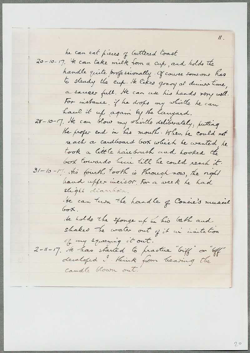Often, I would catch a glimpse of the odd line or two, like the one above, and inadvertently piece together a somewhat fragmented story of my own, as I struggled to find a suitable context for what was before me. The above represents just some of the eccentric details that allude to a larger story. In case you were wondering, Hector is Godfrey Thomson’s son. From Hector’s birth, he became a subject of Thomson’s research. Not in a clinical and lab-like fashion but in a rather practical, and charming, fashion. These papers are personal, yet informative, incredibly detailed, and provide a unique narrative regarding the relationship between father and son. Well worth a look with plenty of drawings too!