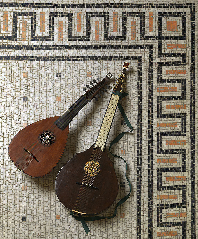 In the studio, with a very limited access to backdrops and props, it can be difficult to enliven the more creative shots of objects. We are well set up now for standard record images against a neutral grey background and it is easy when you need to close in on the details of objects, however, these can start to look a bit ‘samey’ when you have lots of images to do for a project. This is the position I found myself in recently when working on the MIMED collection of musical instruments (see http://images.is.ed.ac.uk/luna/servlet/s/s4mynr). Thankfully, at the University we are blessed with some stunning locations to use instead, but with both of the obvious choices – St Cecilia’s Music Hall and the Reid Concert Hall – off limits for redevelopment, an alternative location required a bit of forethought and planning. Our colleagues at the Anatomy School very kindly agreed to let us use their beautiful Rowand Anderson designed building which provided sympathetic architectural details to arrange the instruments against and Malcolm and I decamped from the studio for 2 days to continue with the project.