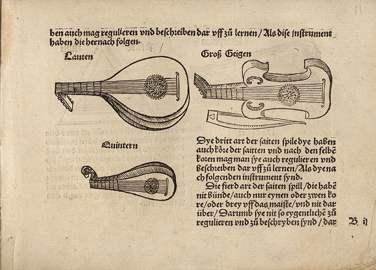 Musica Getutscht (Basel, 1511) is the earliest printed treatise on musical instruments in the west. Written by Sebastian Virdung who was a priest and a chapel singer, it provides rudimentary instruction on playing the clavichord, lute and recorder. It was also the first of its kind to be written in a vernacular language, making it a widely accessible text. Both Virdung and his printer, Michael Furter, were no doubt aware that this would be an important document to offer the German-speaking world, changing the way music education was delivered and creating a new culture of amateur musicians and performers in the sixteenth century.