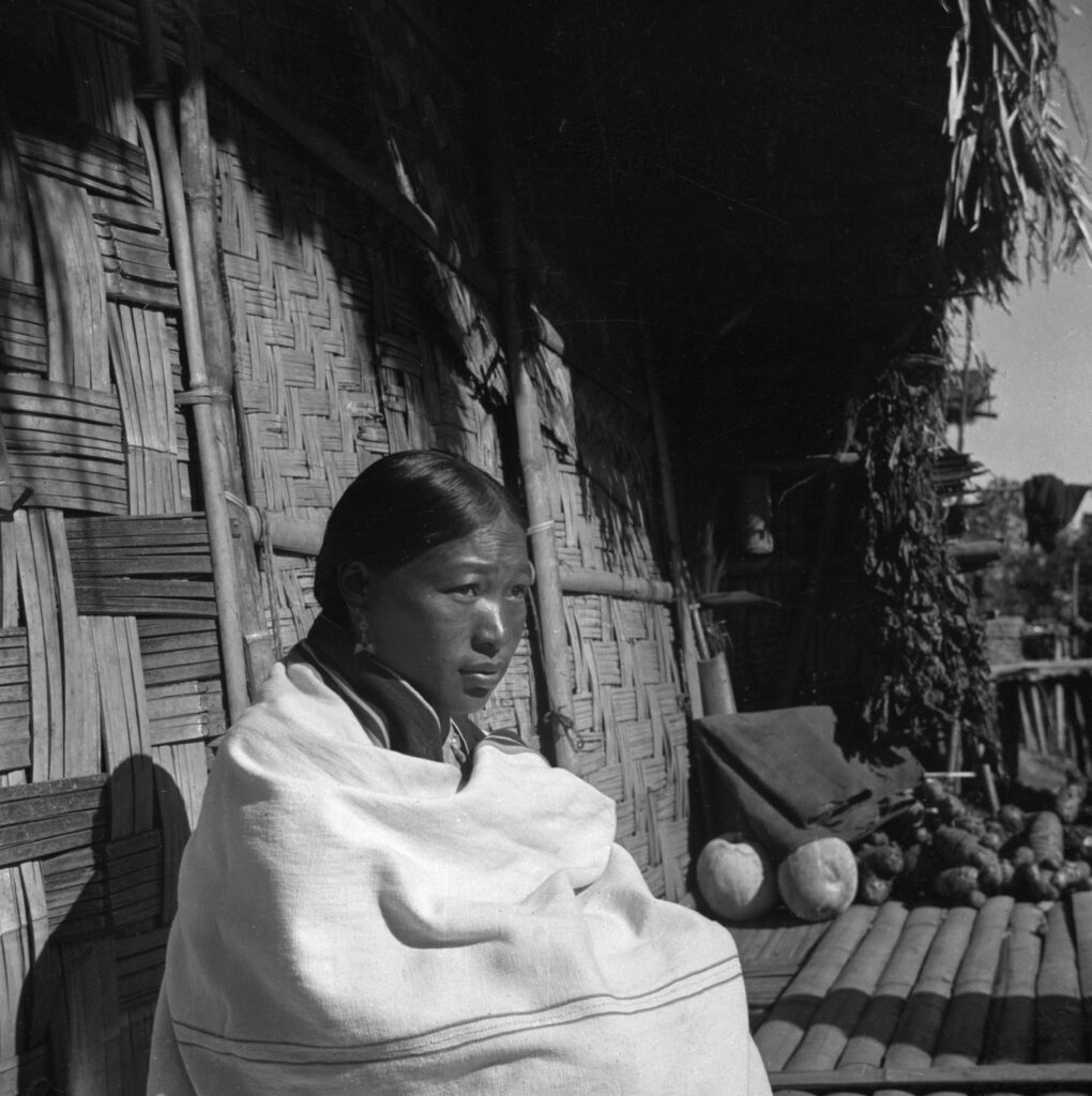 Portrait of Gaidinliu taken in January 1948 in the village of Yimrup by anthropologist Charles Robert Stonor. Gaidinliu lived in Yimrup for ten years after her release from prison in 1947. Donated to the Pitt Rivers Museum in 1969.