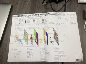 - Visual: The distance data retrieved is sent to TouchDesigner, which then projects the visual representation through the projector.