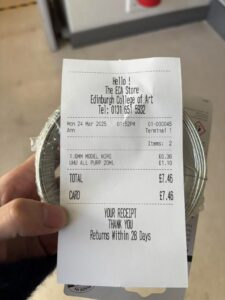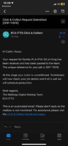 Yanis booked a 3D printer and was able to print one to test out, but it took a while to print. So I ordered it through the Click-and-Collect service at Minto House in the meantime, in case printing them ourselves would take too long as we were never able to book the right printer.