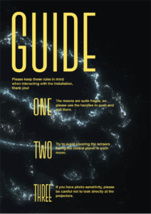 Yanis and I looked at more typefaces and settled on this compressed, tall one. I fitted it to the grid so it would sit nicely between all the information on the poster. As a group we also decided that we might need a small guide on how to use the installation as our models were quite fragile.