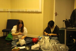 Based on our concept and with the help of Caitlin and Pradyumna, I created a Touchdesigner visual based on a YouTube tutorial (https://www.youtube.com/watch?v=dzYyrvyY-zc&t=1687s) and adjusted the effects and colors to our project. We were trying to substitute the formulas that the team projected into Touchdesigner to use, but it didn’t work out in the end. However, the attractor used in this visual matched the concept of our project so well that we decided to keep the visual and make an ambient video to place in the room.