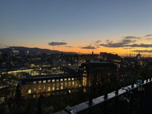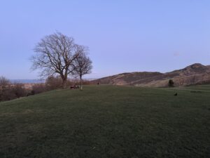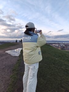 We explored various points on the hill, each offering unique perspectives and soundscape opportunities. From the top of the hill, we can see views of Edinburgh’s cityscape, including Princes Street, the church, the sea, and Arthur’s Seat. This diverse range of visual elements presented a wealth of sound possibilities, perfectly matching our project’s goals and providing more possibilities for creative exploration.