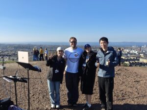 Based on our multiple recordings at Calton Hill, we combined the natural sounds and human activities we collected to recreate and restore the soundscape of the area. We tried to blend distant city ambience with nearby sounds such as footsteps and visitors’ laughter, aiming to build the unique sound texture of Calton Hill through sound.