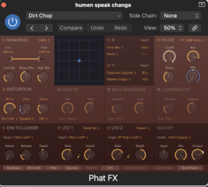 For ambient crowd voices and general human chatter, I applied only Phat FX. This gives the sound a more distorted, less emotionally direct quality, where the language becomes vague and the tone more abstract, creating a sonic contrast to the owner’s voice.