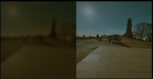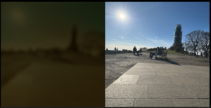 Once I got the colour down, I played with the brightness and darkness of every photo or video to ensure they were as similar as possible, once that was done, I proceeded to work on the blind dog files, I started blurring the image, then added a dark vignete in the center of the eye to simulate cataracts, after I darkend the image altogether.