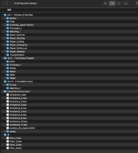 Visitors were invited to walk around or sit inside the space, listening to the soundscape while watching the virtual factory respond in real time.