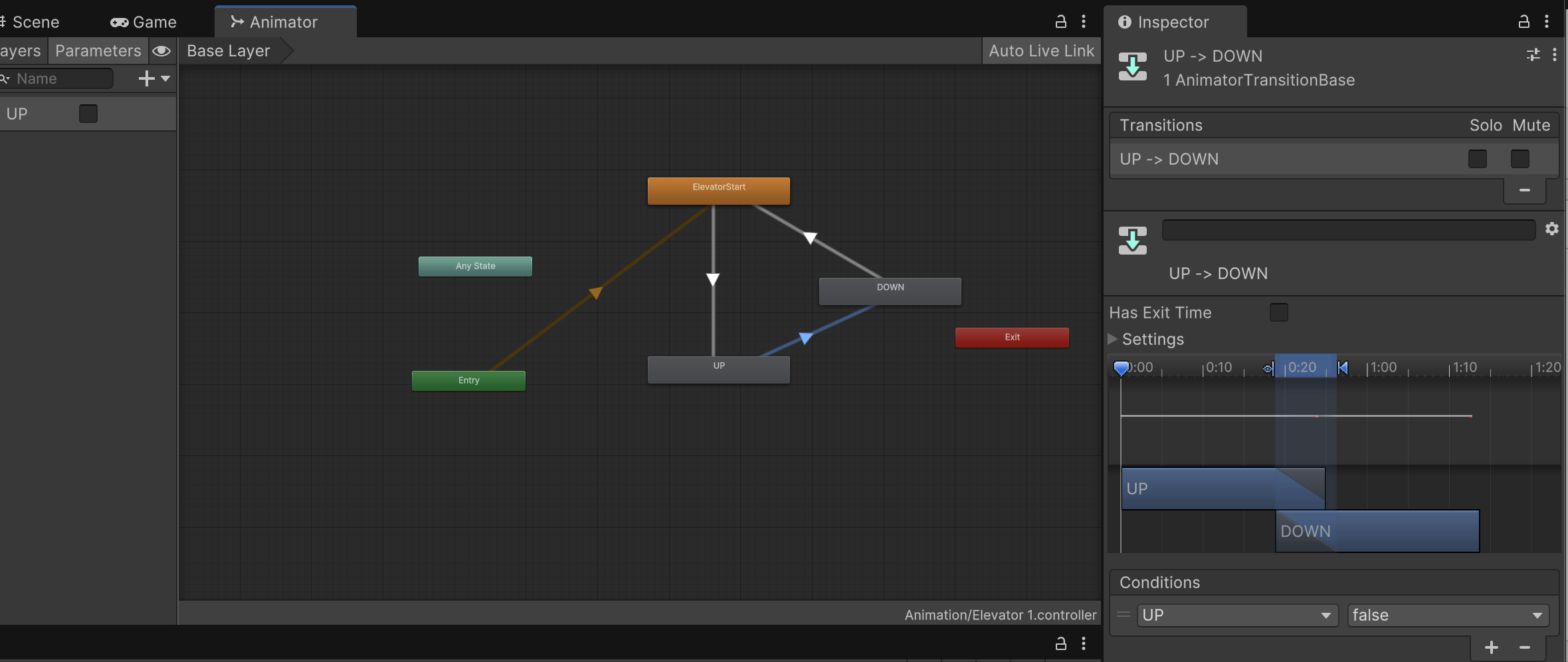 Image 2 shows the Animator I set up for the elevator, moving it from its original position to the designated position within 0.5 seconds.