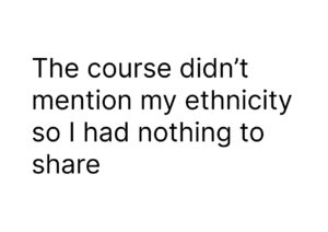 - Have you heard something here (in this group) that has impacted your understanding of race/ethnicity?