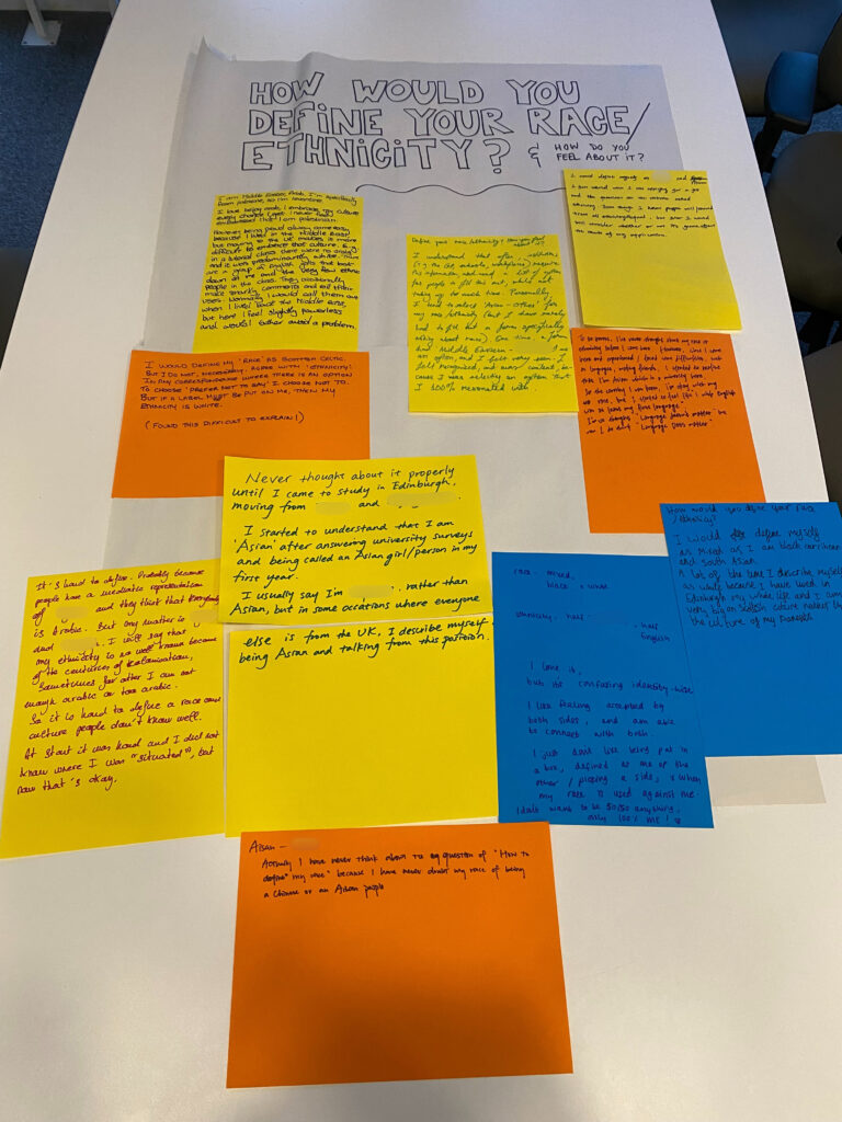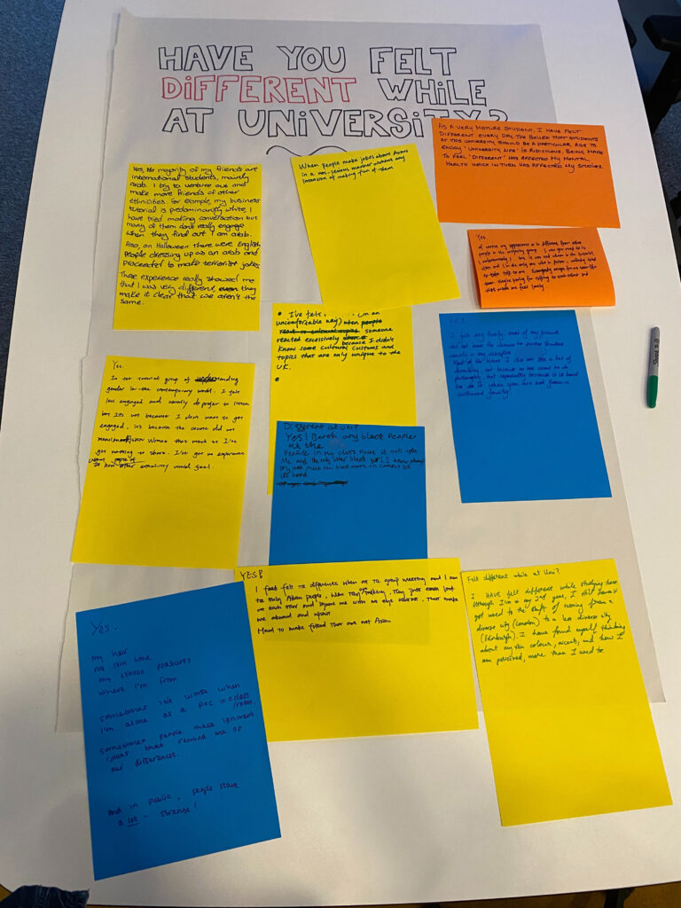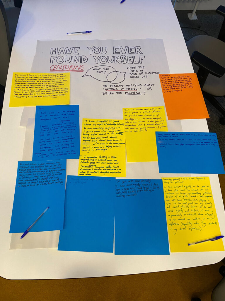 After students wrote down their answers, they had a chance to read each other’s responses and then have a focused discussion reflecting on their current experiences of learning and interacting with racial differences at the University.