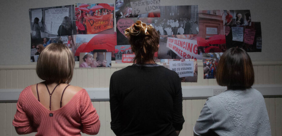 Contributors included: artist and filmmaker Petra Bauer, artist and researcher James Bell, curator and art historian Kirsten Lloyd, art historian Victoria Horne, artist Shona MacNaughton, poet and trans/queer activist Nat Raha, art historian Catherine Spencer, writer and activist Molly Smith, and SCOT-PEP. The programme launched with a public screening of Carole Roussopoulous and collective Vidéo Out’s film ‘Les Prostituées De Lyon Parlent’ in Filmhouse Cinema.