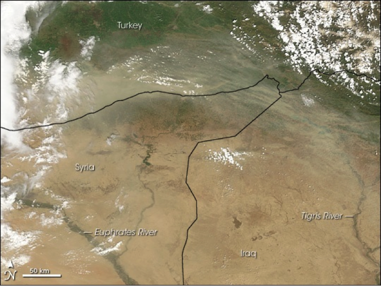 Figure 2: Dust Storms in Iraq-Syria (2010 NASA Satellite)