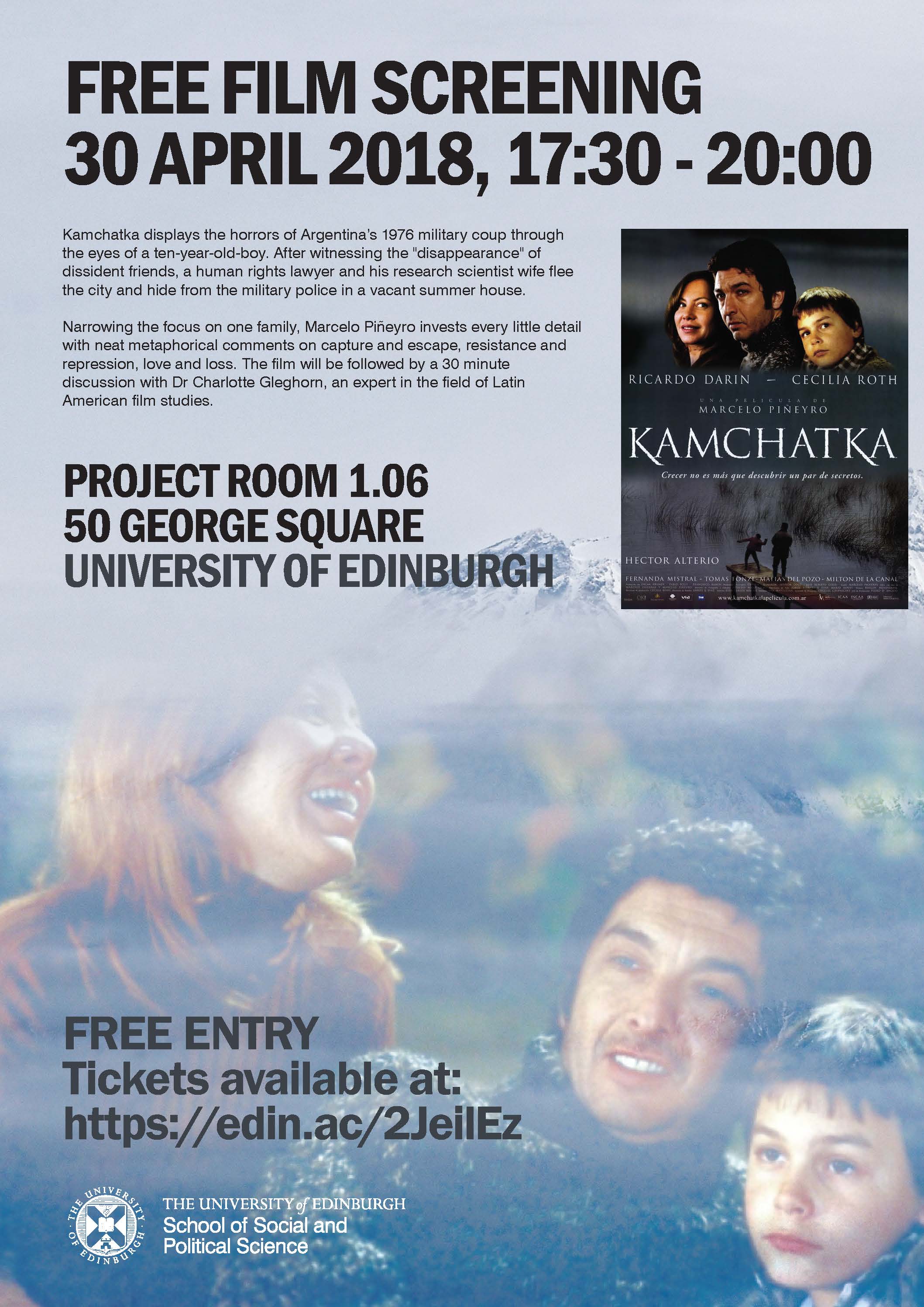 The last movie, Kamchatka directed by directed by Marcelo Pineyro (2002), displays the horrors of Argentina’s 1976 military coup through the eyes of a ten-year-old-boy. In this fictional story, a human rights lawyer and his research scientist wife flee the city and hide from the military police in a vacant summer house after witnessing the “disappearance” of dissident friends. With them are their two kids: Harry, who is fascinated with the escape artistry of Harry Houdini, and El Enano, his little brother. The family adopts new identities and attempts to lead a normal life, even though the edginess of their situation is never far from the surface. Narrowing the focus on one family, Marcelo Piñeyro invests every little detail — a toad on its back, a trapped bird, the board game which father and son play — with neat metaphorical comments on capture and escape, resistance and repression, love and loss. Dr Charlotte Gleghorn, an expert in the field of Latin American film studies from the School of Literatures, Languages and Cultures, University of Edinburgh launched the discussions with a robust contextualisation of the movie. In contrast to the numerous movies produced about political oppression under Latin American authoritarianism, Kamchatka does not address explicitly the politics of oppression of the Military Junta in Argentina. Such silences depoliticise oppression while also demonstrating its very personal accounts and impacts. Students also questioned the romanticisation of resilience: Is the movie the projection of a left wing middle-class director rather than the voice of a child? Is it realistic and accurate to represent experiences of repression with so much play and fun?