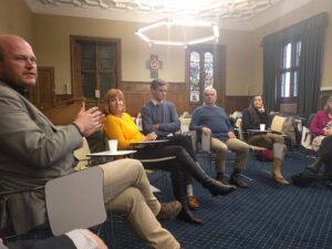 While R&R volunteers presented their challenges and successes, they met in Edinburgh with a series of communities of peacebuilders interested in the scope and best means for a meaningful solidarity and cooperation. The University brings a range of relevant expertise to bear, from inclusive peacebuilding work (a focus of colleagues in the GJA and across the College of Humanities and Social Science) to Christian-Muslim engagement initiatives (in the Al Waleed Centre and the Centre for Theology and Public Issues); initiatives supporting Syrian refugee education were also at hand, bridging academic, chaplaincy, student, civil society and city council networks; vocational training for refugees in architecture and design is already well-established in the programming of Edinburgh World Heritage; and further support for peacebuilding skills and activities was offered by partners from a range of civil society and religious organisations, from the Church of Scotland to Edinburgh Peace & Justice, the Edinburgh Peace Initiative and the Edinburgh Interfaith Association.