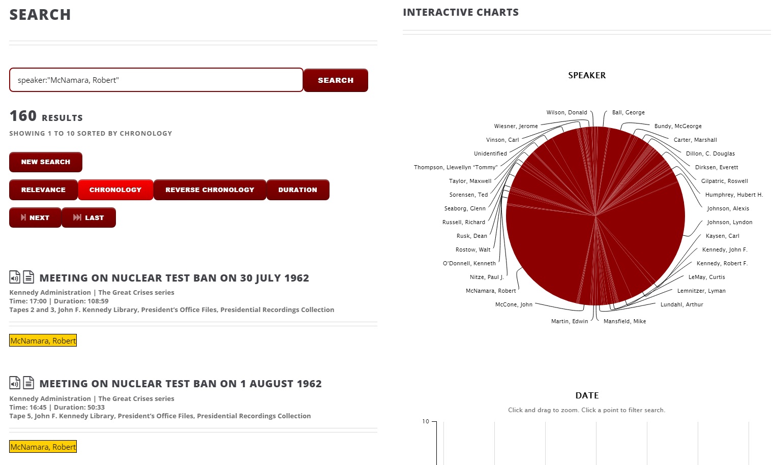 Presidential Recordings Digital Edition is the online portal for annotated transcripts of the White House tapes published by the Presidential Recordings Program (RPR). Created by a team of scholars and researchers at the University of Virginia’s Miller Center, these transcripts are presented in Presidential Recordings Digital Edition alongside the corresponding audio, enabling users to read and listen to these conversations simultaneously. This effort at deciphering the presidential recordings and decoding their meaning allows these extraordinary documents, many of which would remain otherwise inaccessible, to come alive, providing an intimate view of life inside the Oval Office.