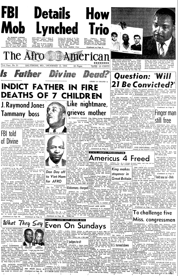 Screenshot of front page of The Afro-American, 12th December 1964.
