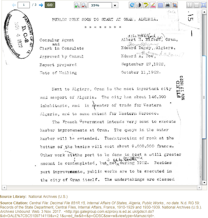 There are four collections within Archives Unbound looking at European colonialism in the early 20th century. These four collections comprise of correspondence, studies and reports, cables, maps and other kinds of documents related to U.S. consular activities. U.S. Consulates were listening posts reporting on the activities of the colonial governments and the activities of the native peoples. The four collections are: