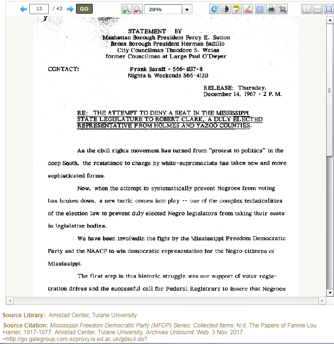 Screenshot from Fannie Lou Hamer: Papers of a Civil Rights Activist, Political Activist, and Woman