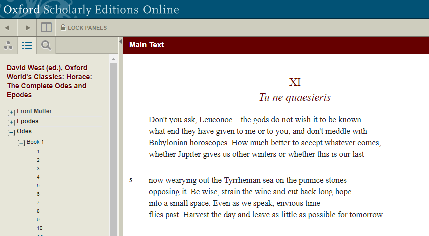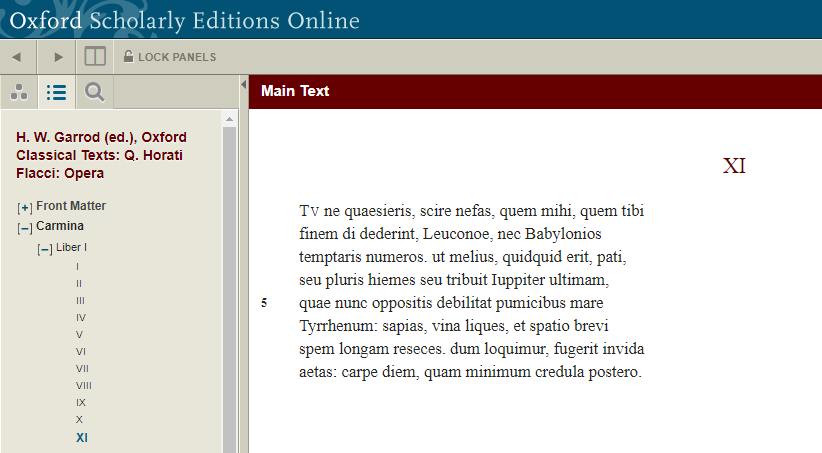 Horace reminding us to seize the day. From ‘Oxford Classical Texts: Q. Horati Flacci: Opera’. Screenshot from OSEO.