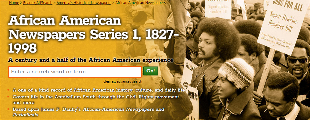 *The Library now has now purchased access to ‘African American Newspapers, Series 1 and 2’. See New to the Library: African American Newspapers.*