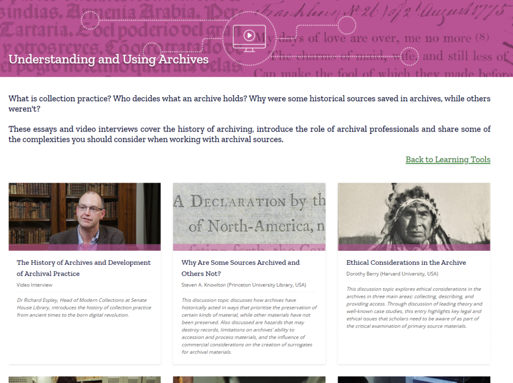 Comprising peer-reviewed essays, How-to guides and newly-commissioned video interviews, the learning tools introduce you to key concepts that underpin research in the humanities and social sciences, and share the core principles and practices for understanding and using primary sources.