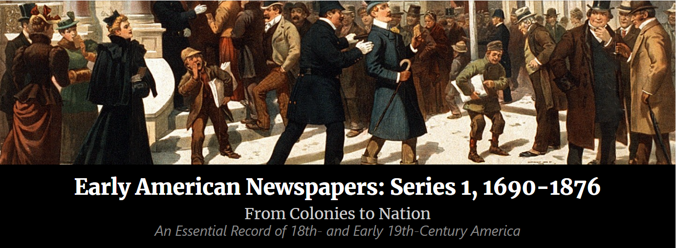 Thanks to a request from a HCA student the Library currently has trial access to Early American Newspapers, Series 1 from Readex, which offers fully searchable issues from over 730 invaluable American newspapers from the period 1690-1876.