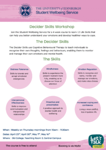 We would greatly appreciate your support in promoting these opportunities to students and staff across the university, particularly those who will be remaining in Edinburgh over the Easter period.