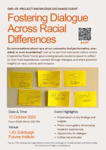 We held a Knowledge Exchange Event on the 10th of October 2025 to share our project with the wider university community and create a space for open engagement and conversation. The recording of our presentation from the event is linked here.