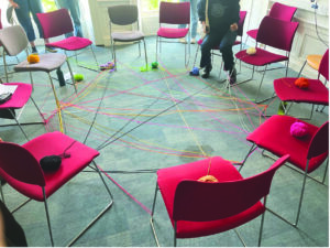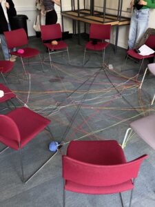 This image was taken during one of our culture circle workshops. The colourful threads weaving between the chairs reflect the diverse, sometimes intersecting, experiences of students. Each thread can be seen as a voice or a story—some stretch across the space boldly, others lie quietly among the rest. Sometimes I found myself initiating conversations and receiving response, while at other times, ideas I had previously shared returned to the circle through someone else’s words. Our experiences are shaped by different socio-political, racialised, and economic forces, yet moments like this reveal how we are connected—imperfectly, spontaneously, but undeniably.