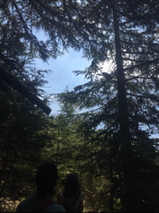 This photo represents the dynamics that one must navigate at university, as shown by the trees in the photo which form a canopy overhead. The limited view of the sky reflects how opportunities can sometimes be obscured by systemic barriers, but the persistence to move forward is what propels us.