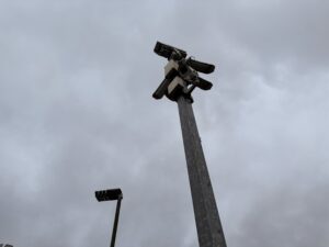 Logan writes about techno-cultures – the ways in which our cultural lives are shaped and determined by various technologies. As we walk through the station carpark, we note the cluster of CCTV cameras by the platform, which capture everyone who enters or leaves this corner of the Moss. While it might seem that we are free of surveillance as we take cover in the birchwood, our phones betray our positions, and we may also be visible to satellite technologies, capable of monitoring human activity from hundreds of miles away in low Earth orbit.