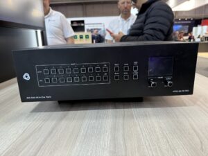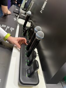 Tuesday was the first day of the main show, where we got to see some of our existing suppliers whose equipment we currently use. We started the day at the Sennheiser stand, where they had built a custom demo space for their newest ceiling beam-forming microphone, the TCCM, and a feature called True Voice Lift. The TCCM is a smaller, round version of the TCC2, which we currently have deployed in various teaching and meeting spaces across the university. The TCCM is tailored towards small to medium meeting rooms. True Voice Lift amplifies a set zone where people can present and boosts their voices through ceiling speakers as if they were wearing microphones. The demo was excellent, and it was great to see Sennheiser’s continued development of their product lines.