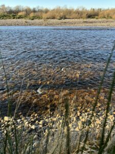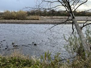 I often wake early and walk at dawn. I see lots of deer that way, being their first disturbance of the morning. I come across an otter bathing in a side stream and get a good look before she notices or cares enough to trundle back into the newly greened willow scrub. I had known the otters were there – early in the spring I heard before I saw two otters slip from their shingle island and swim downstream with noisy whistles. Later in the year, I worry for them when lack of rain leaves the river emptier than I’ve ever seen it and the shingle bank easily accessible to anyone wanting to wade across.