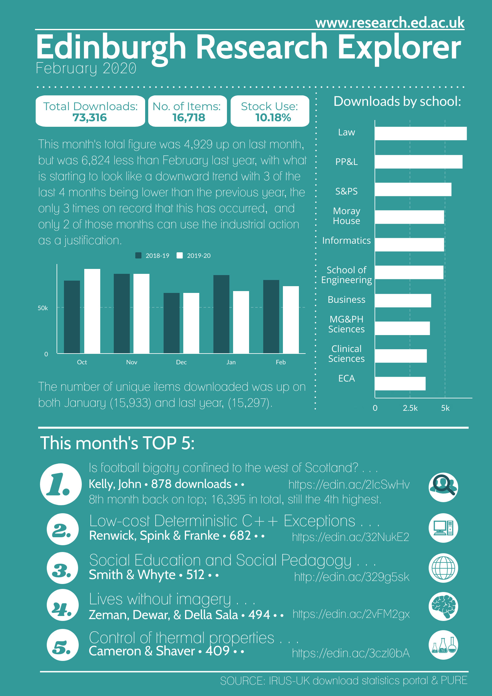 Edinburgh Research Explorer Statistics: February 2020 Published 13 March 2020 by mlogan Mar 13, 2020 Edinburgh Research Explorer Statistics: February 2020 / Open Scholarship by is licensed under a Published in Collections, Gold OA, Green OA and Open Access downloadsEdinburgh Research ExplorerFebruary 2020gold open accessgreen open accessopen accessrepositoryscholarly communications Previous Post Edinburgh Research Archive Statistics: January 2020 Next Post Edinburgh Research Archive Statistics: February 2020