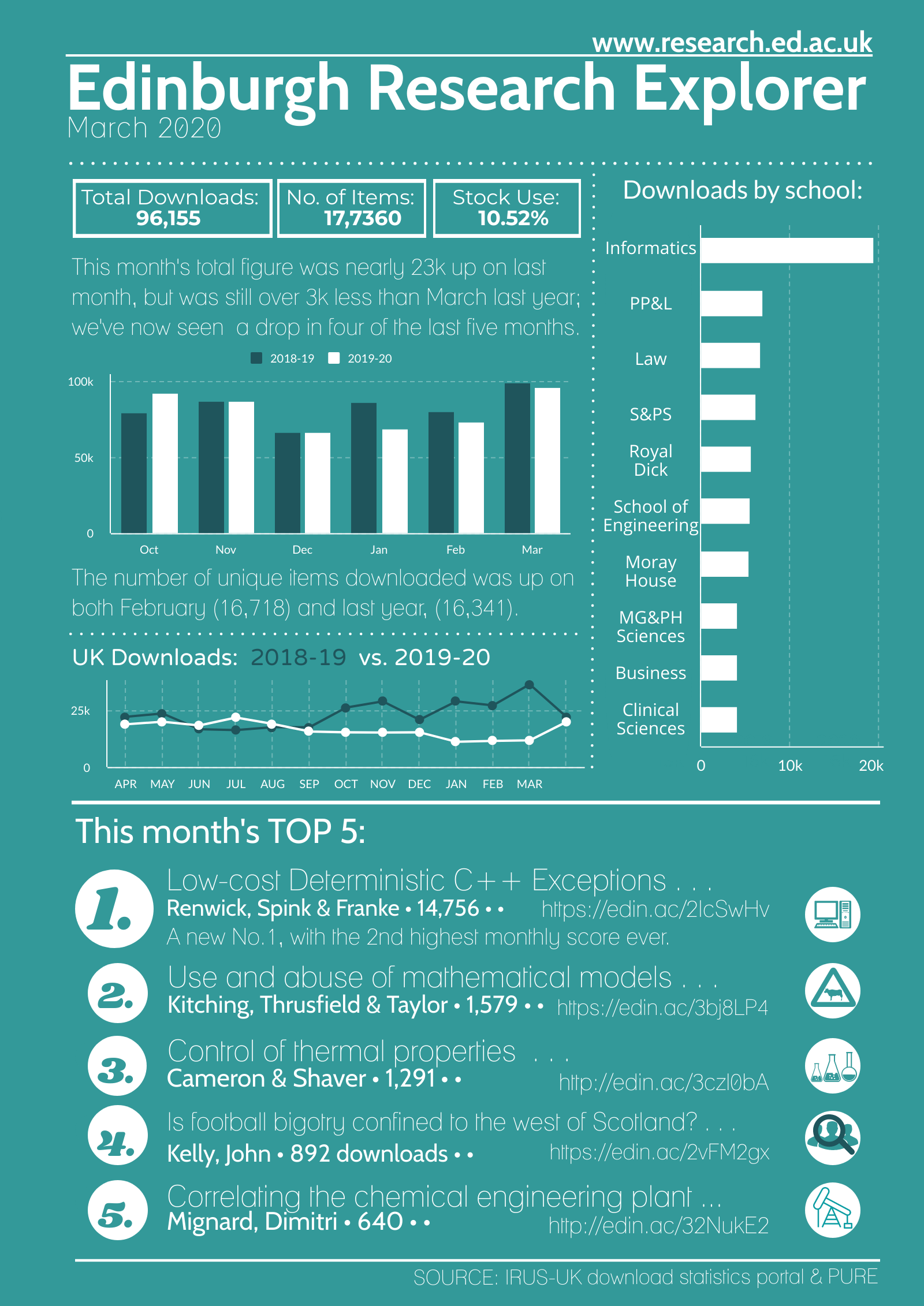 Edinburgh Research Explorer Statistics: March 2020 Published 17 April 2020 by mlogan Apr 17, 2020 Edinburgh Research Explorer Statistics: March 2020 / Open Scholarship by is licensed under a Published in Collections, Gold OA, Green OA and Open Access downloadsEdinburgh Research Explorergold open accessgreen open accessMarch 1920open accessrepositoryscholarly communications Previous Post Edinburgh Research Archive Statistics: February 2020 Next Post Edinburgh Research Archive Statistics: March 2020