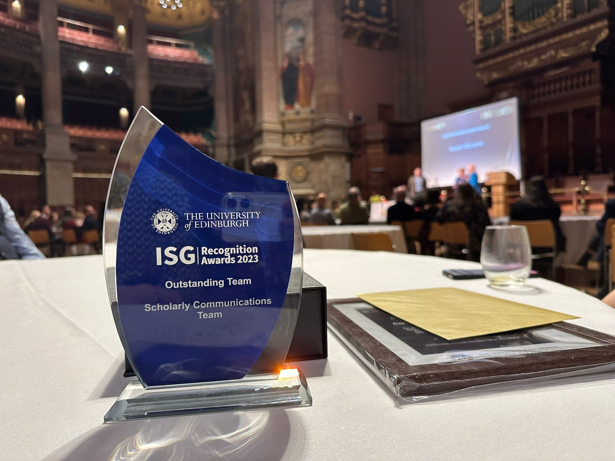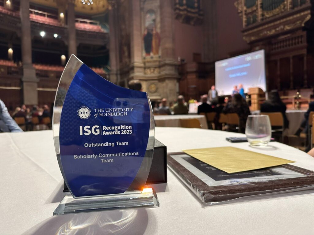The nomination was submitted in recognition of the team’s internationally recognised leading work in championing rights retention for the University’s academic staff. The Scholarly Communications Team were the architects behind the ground-breaking Copyright and Research Publications policy, which was formally accepted by the University Executive and introduced on 1 January 2022. The University of Edinburgh was the first UK university to adopt an institutional rights retention policy, and since then over 30 other institutions have followed suit, including the University of Cambridge and the University of Oxford, and in Scotland the Universities of St. Andrews and Glasgow, with lots more actively planning a similar approach.