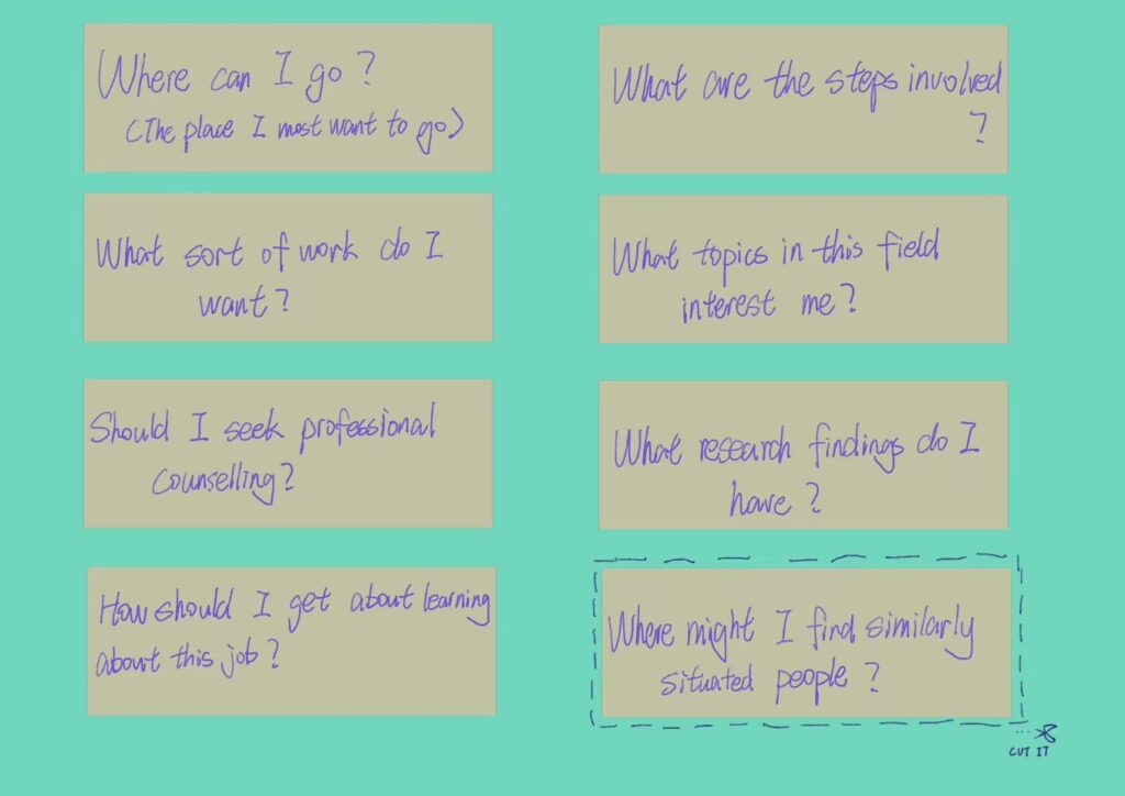 1) Based on my answers to the three questions, each learner selects three cards that best represent my keywords, offering appropriate explanations for their choices.