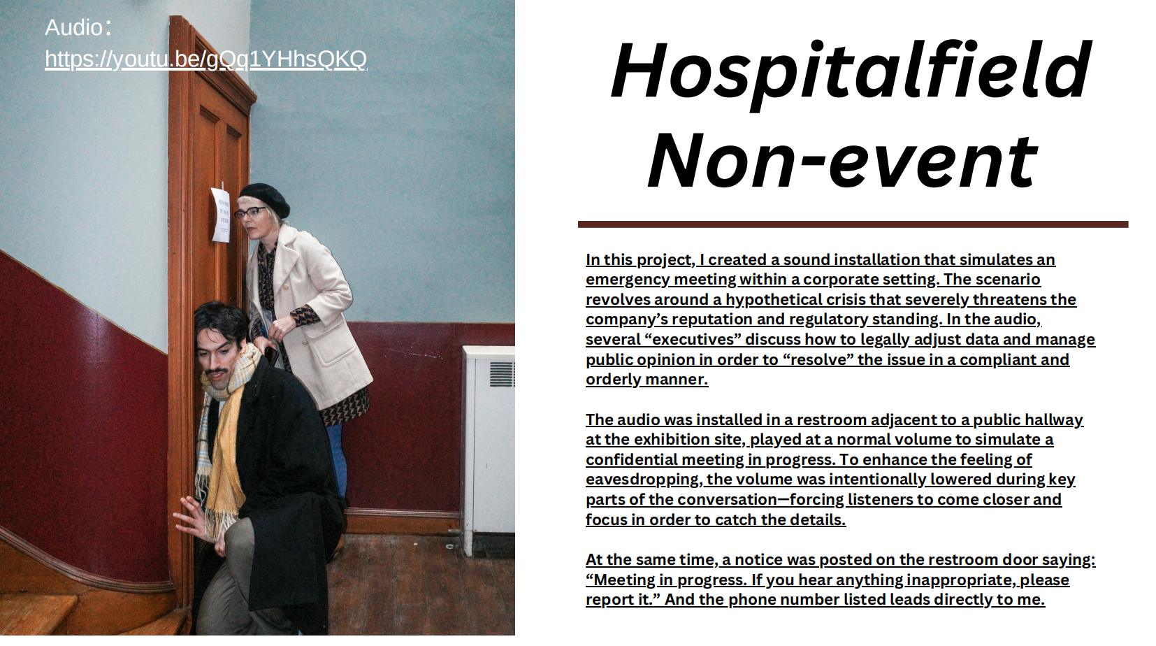 Mediums: sound art, interactive works, co-created pieces