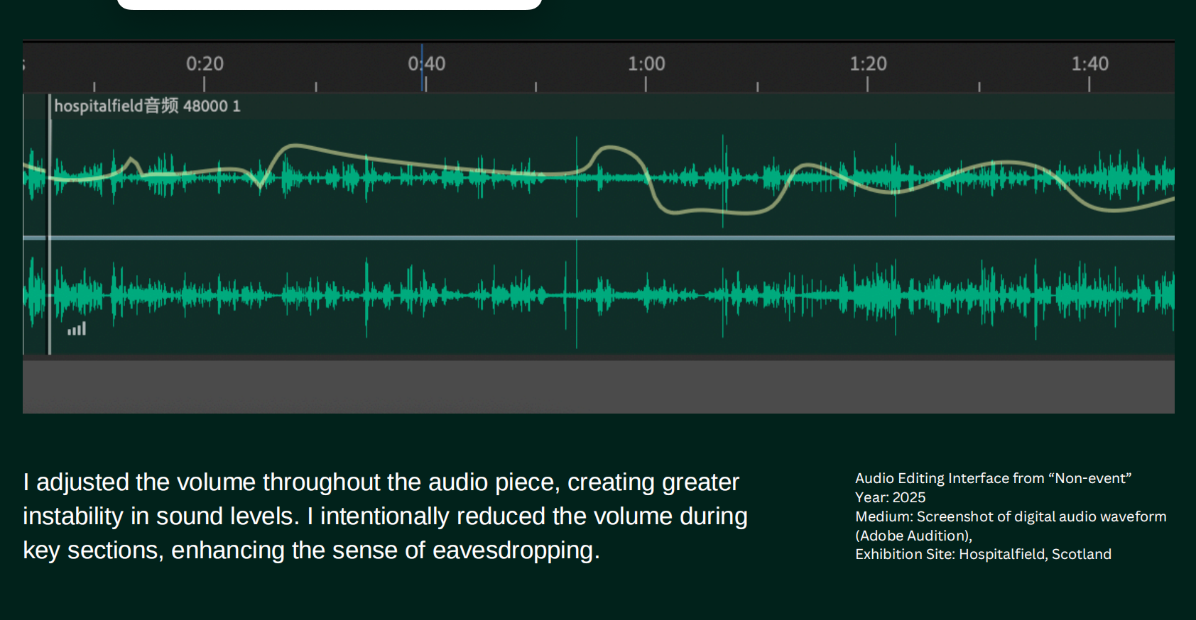 Why she fits: Keyi’s use of spatial perception echoes Aneta Szyłak’s theory of “curating context” (The Curatorial, 2013), where space and sensation are integral to meaning.