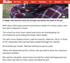 DIED OF SHAME, accessed March 23, URL: https://www.thesun.co.uk/news/9910644/kenya-school-hanged-herself-period-shamed/.