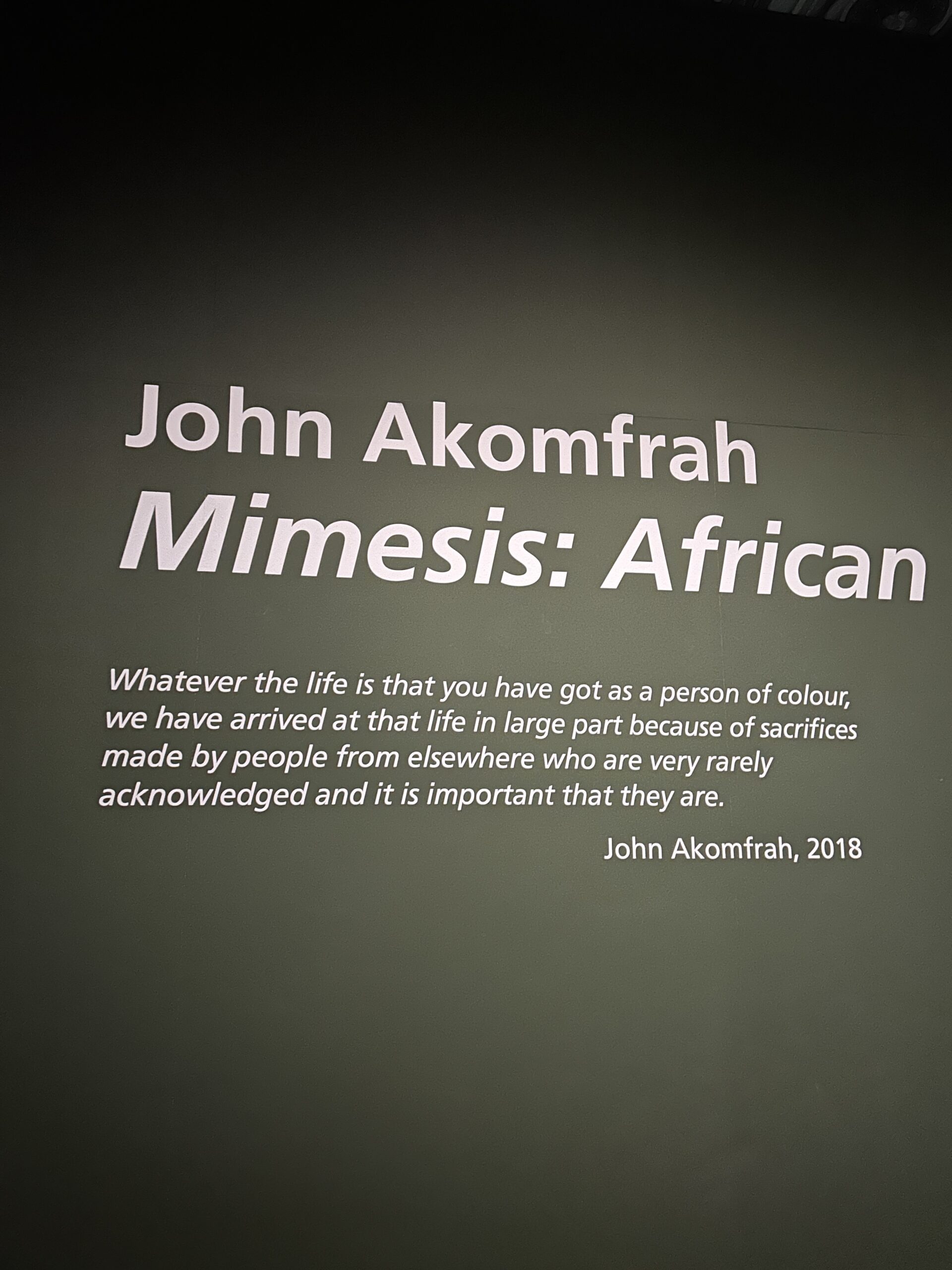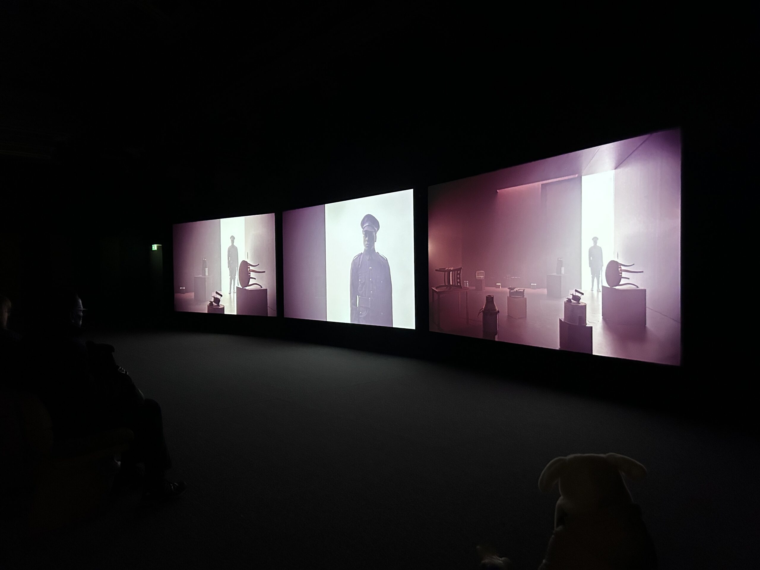 I went to Glasgow this week to visit the gallery of modern art, which had an interesting exhibition. I’d like to describe some of the parts that stand out. The first hall is a cinema, composed of three large screens, which play videos shot from different angles. First, footage of the war is shown, followed by survivors’ reactions when they see familiar objects, and finally, a stream filled with old objects and bones. I think it’s handled very cleverly, for example, when it’s someone’s turn to recall, he’ll sit in a chair under a tree, and then you can hear a gunshot, and he’ll fall straight down. You can experience the cruelty of war in the artistic treatment, the whole space is gray, and the heart is also depressed. In fact, the peace and justice that we have now is the result of the sacrifice of a few people, whose lives were exchanged for human rights.