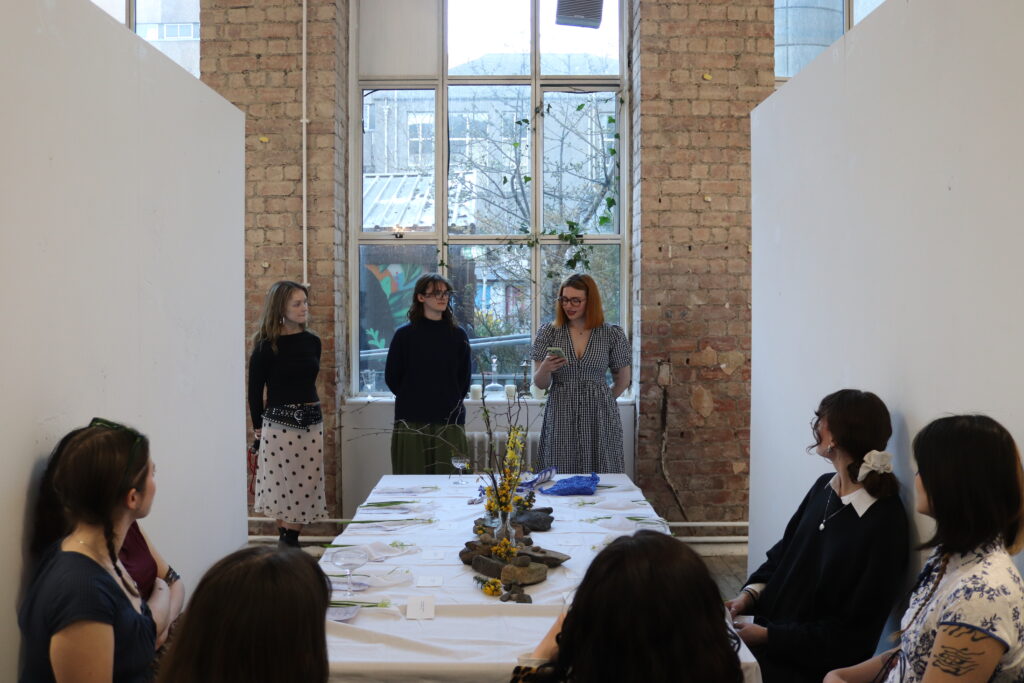 Kate Garramone, Emily Geary, Sarah Percival, and Harry Mayston, Gurrl Dinner Tablescape (2025), Photo taken on site in the In Vitro gallery Summerhall, By Harry Mayston (06/04/2025)