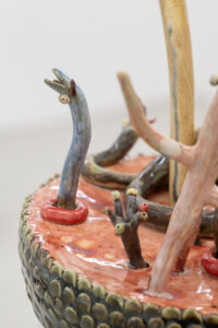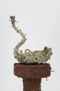 This transformation makes the myth no longer attached to the established history or national narrative but regenerated at the micro level. Compared with the original framework, this work has changed the presentation of “power”. Here, power is no longer a grand oppressive structure but exists in the form of circulation, symbiosis and generation. The relationship among microorganisms, soil, and ceramics constitutes a constantly changing ecosystem, which also transforms “mythical animals” into an ecological entanglement. This echoes Barthes’ view that “myth is the production system of meaning”: meaning is not established but generated in constant transformation and relationship.