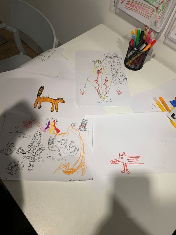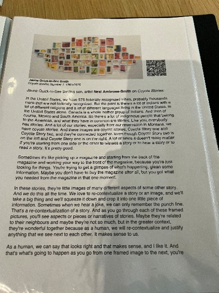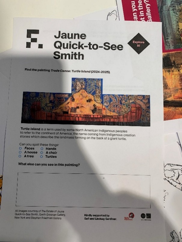 In the second week, I visited the Jaune Quick-to-See Smith Wilding exhibition at Fruitmarket Gallery[3]. After viewing this exhibition, I learnt numerous techniques to enrich my own exhibitions and enhance audience interaction. For instance, setting up a drawing area for children and posing questions such as: ‘Did you spot these images in the exhibition and artworks? Then providing a partial image for them to recall and sketch. Alternatively, not giving a standard image at all, allowing them to use their imagination before seeking out these details personally. This approach not only sparks children’s interest in the exhibition but also offers valuable feedback on how they perceive art through their innocent perspective, thereby informing improvements to the exhibition. I also learnt to set up comment boxes and questionnaires to gather more precise feedback on the exhibition and the artworks.