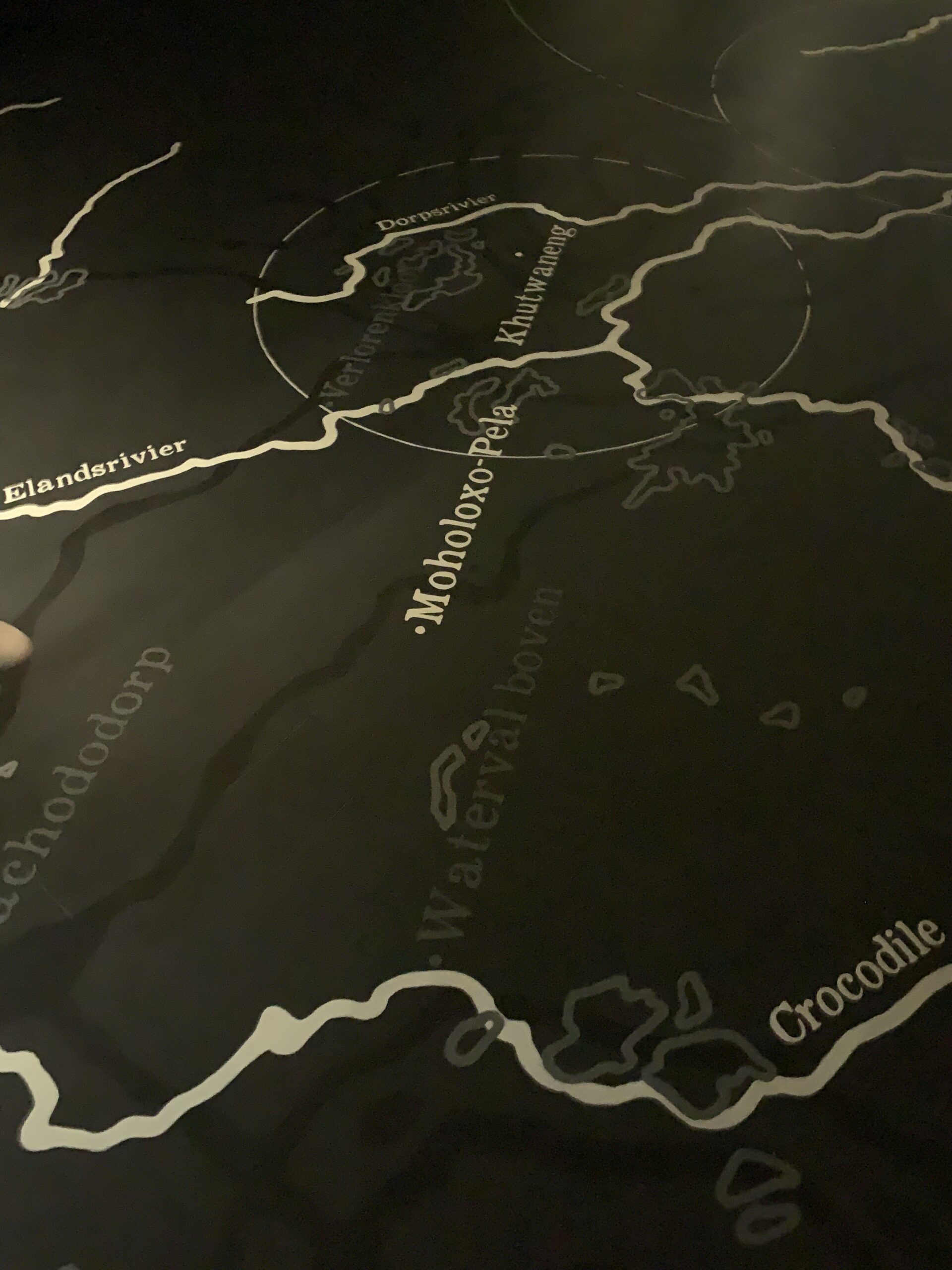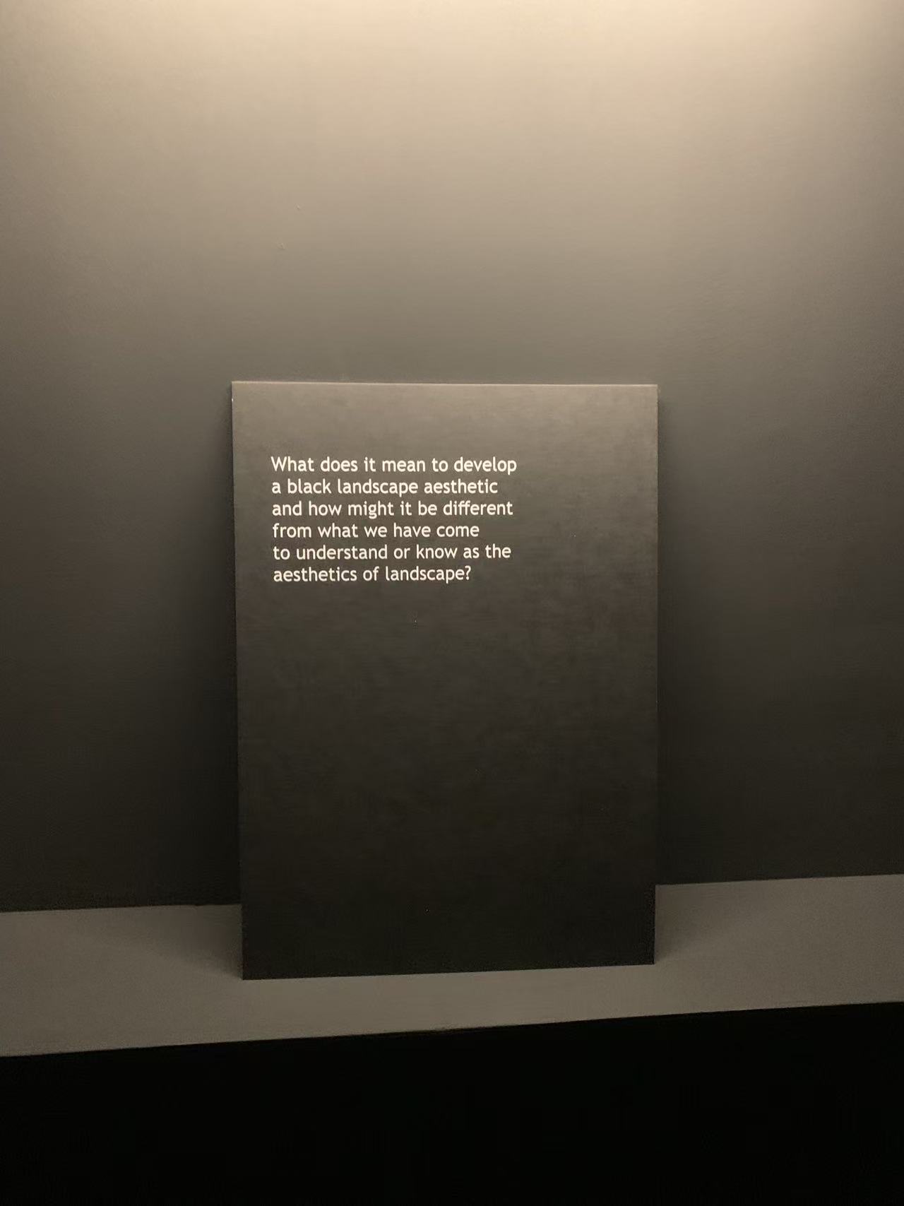 My favorite exhibition design is the final section of the group exhibition, where the curator’s design of this area represents an artistic expression that maximizes the use of space. Here, the spatial design is integrated with text provided by the artists. The curator uses the walls of the exhibition’s long, narrow corridor to display a series of question, with increasingly profound inquiries prompting the audience’s deeper reflection. As the tone of the questions gradually intensifies, accompanied by surround sound that enhances the immersion, visitors fully engage with both the artwork and the space. Furthermore, the floor design beneath their feet aligns perfectly with the artwork: a map outlined in white lines on a black floor allows European visitors to experience the feeling of occupying another’s land.