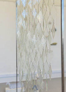 Composed of over 300 glass fragments, the work is hand-assembled into a suspended structure using steel rings. The glass was fired at temperatures exceeding 1000°C, creating softened edges and a crystalline surface texture. Tide and Temper explores the subtle relationship between humanity and nature: nature is not merely an external landscape but an experience that can be reimagined through materials, light, and space.